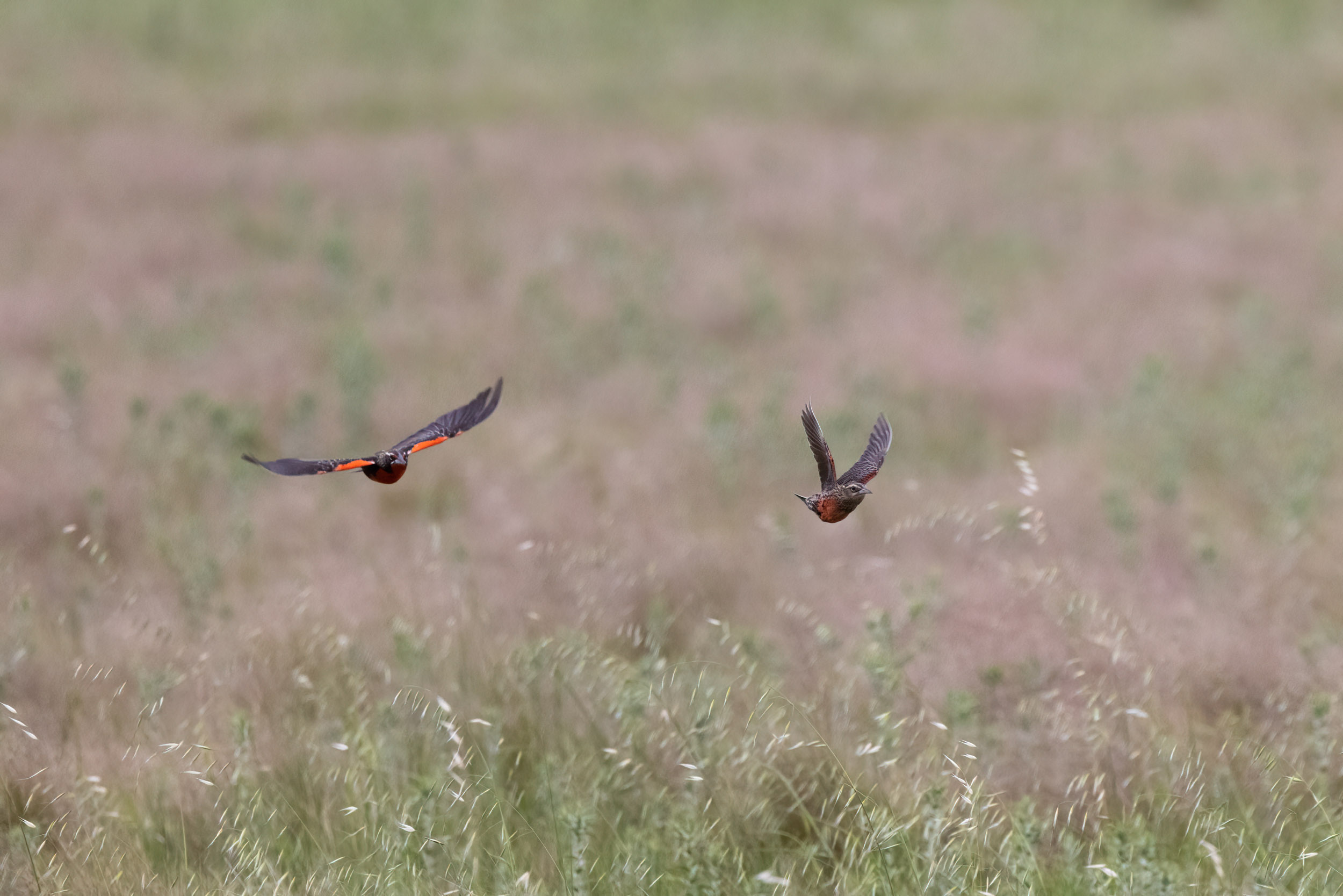 We completed the entire drive to Bahia Blanca the day before, so all we had was a short ride northwest of town to the pastures that PAMPAS MEADOWLARKS call home. Just a bit past the turnoff for Chasico we parked the car and focused on fields looking west. It didn't take long for a skylarking meadowlark with dark underwings to declare itself as a Pampas, though we had to take great care to separate these birds from the numerous LONG-TAILED MEADOWLARKS and scattered WHITE-BROWED MEADOWLARKS that also reside here. We spent a while soaking in this rare species that the three of us are unlikely to ever see again. Most of the time the Pampas kept their distance from the road, unlike the Long-taileds which had no such aversion.